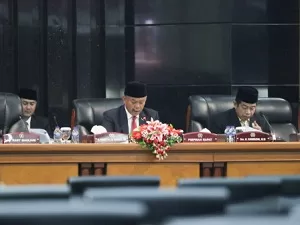 Rapat paripurna dipimpin Ketua DPRD DKI Jakarta, Prasetio Edi Marsudi dan dihadiri Penjabat (Pj) Gubernur DKI Jakarta, Heru Budi Hartono.