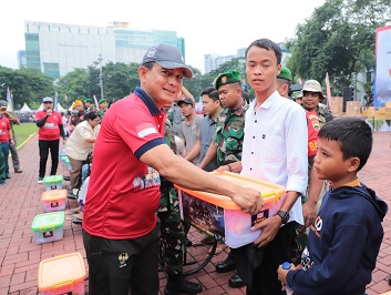 Tak ketinggalan, juga dilakukan pelepasan 78 motor Babinsa, Babinpotmar dan Babinpotdirga yang membawa 780 paket sembako untuk dibagikan kepada warga kurang mampu di wilayah Mebidang (Medan-Binjai-Deliserdang).