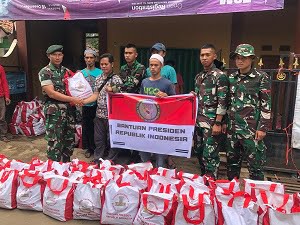 Bantuan Presiden RI Didistribusikan Oleh Prajurit Raider 300 Ke Tenda-Tenda Pengungsi
