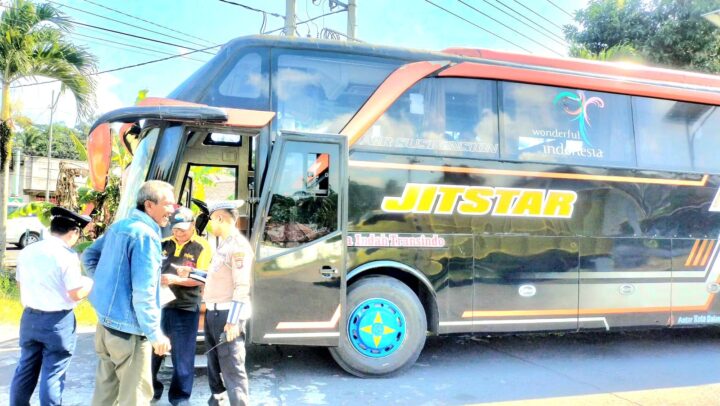 Jelang Libur Sekolah, Satlantas Polres Lumajang dan Dishub Sidak Kelayakan Bus Pariwisata dan Umum