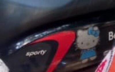 Adapun detail motor milik korban body depan agak retak sebelah kiri, ada stiker hello kitty di body belakang sebelah kiri.