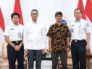 NasionalPos.com, Jakarta- Penjabat (Pj) Gubernur Provinsi DKI Jakarta, Heru Budi Hartono menerima Dani Arwanto, Ketua RT 07/01, Kelurahan Tugu Utara, Koja, Jakarta Utara di Balai Kota, Rabu 7/6/2023. Dani Arwanto merupakan penerima Penghargaan Kalpataru kategori Perintis Lingkungan tahun 2023.