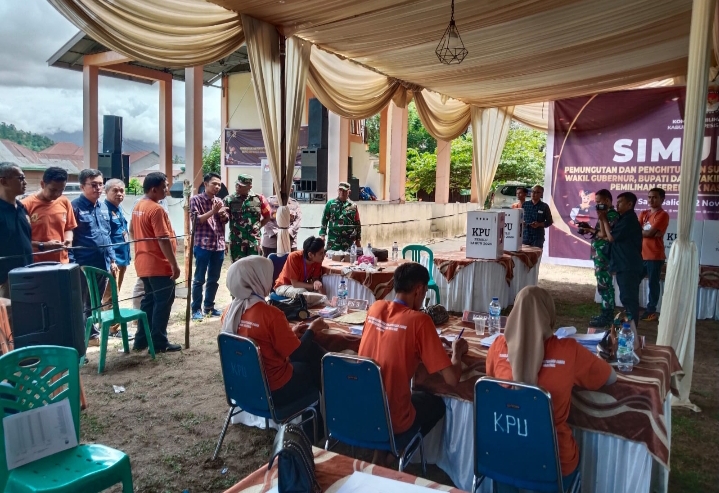 “Simulasi ini bertujuan untuk memastikan seluruh proses pemungutan dan penghitungan suara dapat berjalan dengan lancar dan sesuai prosedur,” ujar Aswandi.