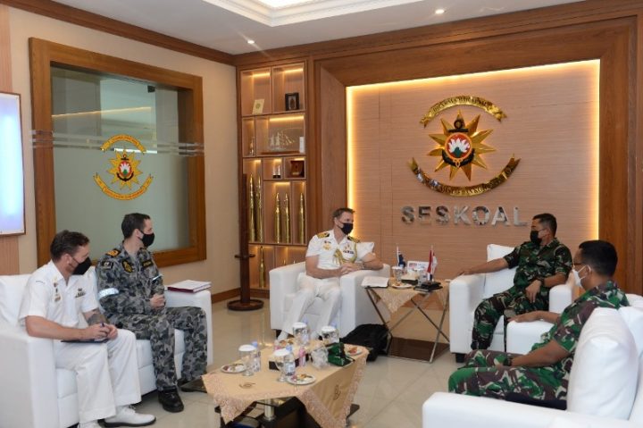 NasionalPos.com,Jakarta – Komandan Sekolah Staf dan Komando Angkatan Laut (Seskoal) Laksamana Muda TNI Tunggul Suropati, S.E., M.Tr (Han). Yang diwakili Kepala Koordinator Dosen (Kakoordos) Seskoal Laksamana Pertama TNI Judijanto,S.T., M.Si., M.A., menerima kunjungan Kehormatan Atase Pertahanan (Athan) Angkatan Laut Australia, diruang Tamu VIP gedung Samadikun Markas Komando (Mako) Seskoal, Cipulir, Kebayoran Lama, Jakarta Selatan, Kamis (10/02/2022).
