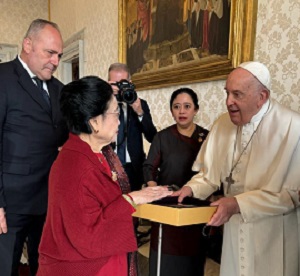 NasionalPos.com, Jakarta-Momentum pertama kalinya Presiden Kelima Indonesia sekaligus Ketua Umum PDIP Megawati Soekarnoputri bertemu Paus Fransiskus di Istana Apostolik, Vatikan pada Senin, 18 Desember 2023 kemaren, memicu munculnya berbagai pendapat dan bahkan telah menjadi perbincangan politik hangat di kalangan Masyarakat, pasalnya peristiwa langka itu terjadi di saat Indonesia dihadapkan pada situasi menjelang pelaksanaan pemilihan presiden maupun pemilihan legislative pada 14 Februari 2024 mendatang, serta keberadaan Megawati SP sebagai ketua umum PDI-Perjuangan.