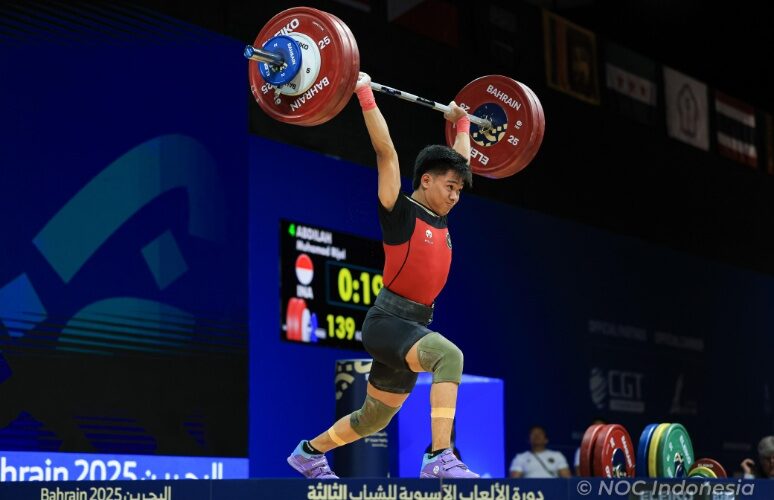 Bahraain,NasonalPos.com – Atlet muda angkat besi Indonesia, Muhamad Rijal Abdilah, sukses mempersembahkan medali emas kedua bagi kontingen Tanah Air di ajang Asian Youth Games Bahrain 2025. Rijal tampil gemilang di kelas boys 60kg dengan angkatan clean and jerk 143 kg.