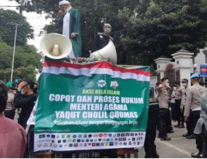 NasionalPos.com, Jakarta — Ribuan massa aksi yang tergabung dalam Persaudaraan Alumni (PA) 212, GNPF Ulama, FPI dan Spirit 212 mengepung kantor Kementerian Agama (Kemenag), Jumat (4/3/2022). Massa menuntut pencopotan Menteri Agama Yaqut Cholil Qoumas yang mencederai Umat Islam terkait pernyataannya yang dianggap menyamakan suara azan dengan gonggongan anjing. Massa terlihat mulai bergerak ke kantor Kemenag …