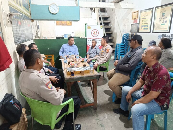 NASIONALPOS.com | JAKARTA – Kapolres Pelabuhan Tanjung Priok AKBP Indrawienny Panjiyoga, S.H., S.I.K., melalui Kompol Bagin Efrata Barus, S.Pd., S.I.K., Kapolsek Kawasan Kali Baru Polres Pelabuhan Tanjung Priok melaksanaan kegiatan “Ngopi Kamtibmas Menuju Pilkada Aman dan Damai”, di kantor TKBM Kali Baru, Kecamatan Cilincing, Jakarta Utara, Rabu (25/9/2024).