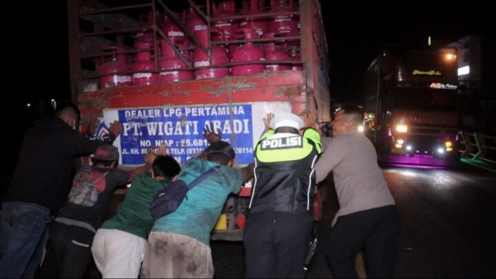 Operasi Mantap Praja Berbuah Kebaikan, Polisi Bantu Truk Mogok di Tengah Jalan