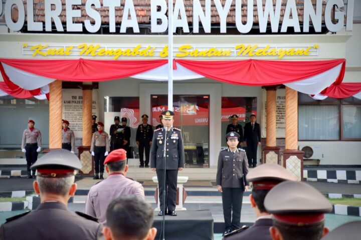 Kegiatan upacara tersebut dipimpin langsung oleh Wakapolresta Banyuwangi AKBP Dewa Putu Eka Dharmawan,S.I.K., M.H., yang diikuti oleh jajaran Pejabat Utama (PJU), Perwira, Bintara dan ASN Polresta Banyuwangi.