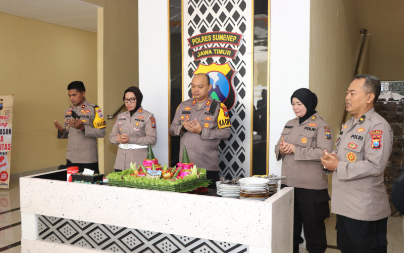 SUMENEP – NASIONALPOS.com | Pada hari Senin (1/9/2025), jajaran Polres Sumenep melaksanakan kegiatan Do’a bersama dalam rangka memperingati Hari Jadi Polisi Wanita (Polwan) Republik Indonesia ke-77. Kegiatan yang berlangsung di Lobby Polres Sumenep, Jl. Urip Sumoharjo No. 35, Desa Pabian, Kecamatan Kota Sumenep, Kabupaten Sumenep tersebut dihadiri langsung oleh Kapolres Sumenep, AKBP Rivanda S.I.K., bersama para Pejabat Utama (PJU) Polres Sumenep, serta seluruh Polwan Polres Sumenep.