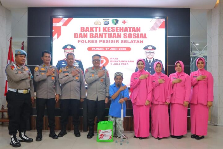 Pesisir Selatan, Nasionalpos.com – Dalam rangka memperingati Hari Bhayangkara ke-79 tahun 2025 yang jatuh pada 1 Juli mendatang, Polres Pesisir Selatan menyelenggarakan kegiatan Bakti Kesehatan dan Bantuan Sosial dengan tema “Polri untuk Masyarakat”. Acara ini berlangsung di Aula Endra Dharmalaksana Polres Pesisir Selatan (Pessel) Provinsi Sumatera Barat (Sumbar) pada Selasa (17/6/2025) mulai pukul 08.00 WIB hingga selesai.