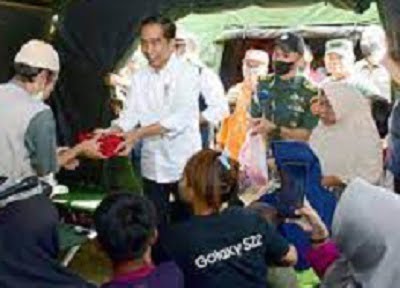 NasionalPos.com, Cianjur– Presiden Joko Widodo (Jokowi) didampingi Kepala BNPB Letjen TNI Suharyanto menyerahkan bantuan berupa Dana Stimulan kepada warga terdampak gempabumi M 5.6 Cianjur di Batalyon Rider 300, Cianjur, Jawa Barat, Kamis, 8/12/2022,  Bantuan Dana Stimulan itu diberikan kepada warga pemilik rumah yang mengalami kerusakan terdampak gempabumi sesuai kategori dan tingkat kerusakan.
