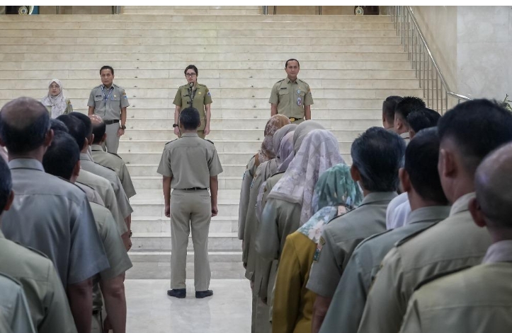 Sekretariat DPRD DKI Jakarta menggelar apel pagi. Kegiatan itu rutin dilaksanakan setiap Senin.