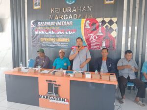 Sekertaris Kelurahan Margadana Sudarmo, SE Minggu (11/08/2024) di pendopo balai Kelurahan Margadana membuka secara langsung pertandingan lomba catur tingkat kelurahan.