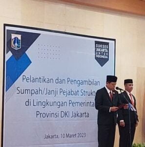 NasionalPos.com, Jakarta– Sekretaris Daerah (Sekda) DKI Jakarta Joko Agus Setyono melantik pejabat struktural di lingkungan Pemerintah Provinsi (Pemprov) DKI Jakarta, Jumat (10/3/2023). Pelantikan berlangsung di Gedung Blok G Balai Kota DKI Jakarta, Gambir, Jakarta Pusat. Pelantikan pejabat ini dimulai pukul 16.10 WIB. Menurut Joko, terdapat 607 orang yang dilantik di eselon III dan Eselon IV. …