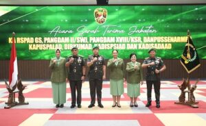 NasionalPos.com, Jakarta- Hari ini, dalam sebuah upacara resmi di Markas Besar Tentara Nasional Indonesia Angkatan Darat (Mabesad), dilaksanakan serah terima jabatan Panglima Komando Daerah Militer (Pangdam) XVIII/Kasuari. Serah terima ini menandai peralihan kepemimpinan dari Mayjen TNI Ilyas Alamsyah, S.E., M.Tr.(Han)., CGCAE., kepada Mayjen TNI Haryanto, S.I.P., M.Tr.(Han). Kegiatan sertijab itu dilaksanakan bertempat di Aula Jenderal …