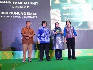 NasionalPos.com, Jakarta- Bank Sampah Gunung Emas dari Provinsi DKI Jakarta menerima penghargaan sebagai Bank Sampah Terbaik 2023 dari Kementerian Lingkungan Hidup dan Kehutanan (KLHK).